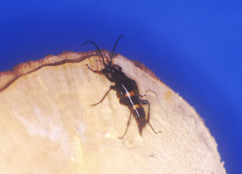針葉樹の伐採木や花によく飛来し,普通に見られます.