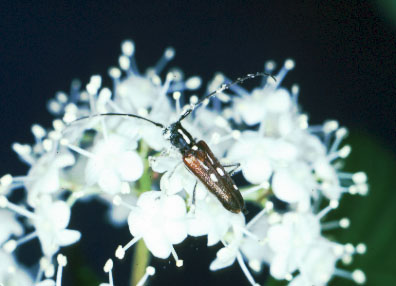 幼虫はニレ科の枯木にいますが,成虫はオヒョウの葉をよく後食しています.