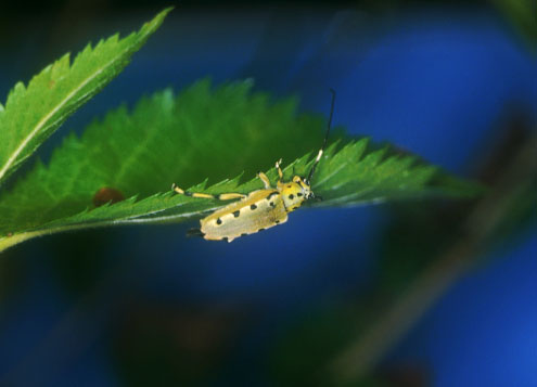 サクラの樹幹や枝葉にいますが,ウメノキゴケに紛れていると見つかりません.