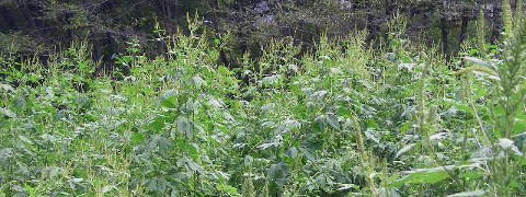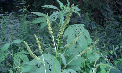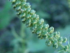 英名は“Hog(豚) Weed(草)”.....まんまですね。風媒花でスギ花粉症・イネ花粉に次ぐ花粉症の原因植物として注目されました。その後、天敵「ブタクサハムシ」が繁殖してくると、その勢いにおされて激減したと言われます。画像は「オオブタクサ」です。