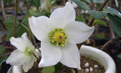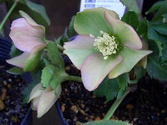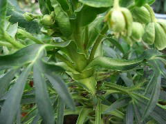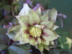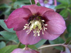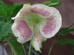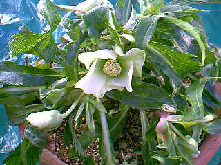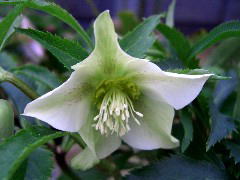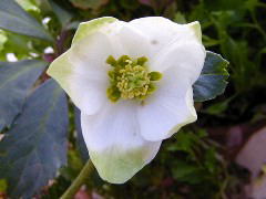 名前のとおりクリスマスの寒い冬に花を咲かせる、ファンの多い冬の花です。耐寒性の強い宿根草で、株分け・種蒔きで増やします。ヘレボラスの学名はヘレイン(殺す)+ボラ(食物)の合成語といわれています。昔、ヨーロッパでは、この根茎に魔力が秘められているとされていて、狂気などを直す薬として使われていたそうです。 |