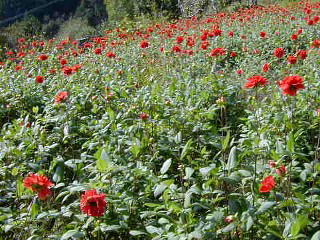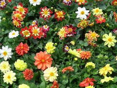 初夏から初秋に咲くなじみの深い有名な花ですが品種改良も盛んで、生まれては消えの繰り返しでめちゃくちゃ品種が増え、どこまでがダイアだか区別できないほどになっていますね。和名の「天竺牡丹」は、花がボタンに似ているためつけられたものです。 |