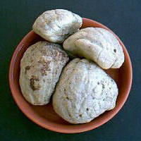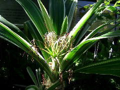 | 実です。花の付け根にポロポロできます。ヒガンバナ科ですが球根はできません。この実が海流に乗って椰子の実のようにあちこちの浜に流れ着き根を張り花を咲かせます。 |
