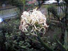 | 花をみつけたので撮ってきました。カメラ付ケータイで撮ったのでちょっと画像が荒れています。夜になると香りが強くなるといいます。 |