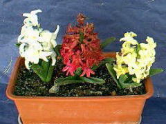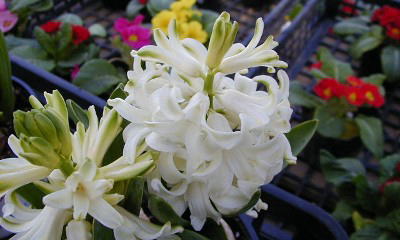 | よく水栽培で育てたりしていますね。色の種類多く艶やかですが、香りもかなり強めなので好き嫌いが別れるようです。球根には皮膚炎を引き起こす成分が含まれますので、多く扱う場合は要注意です。 |