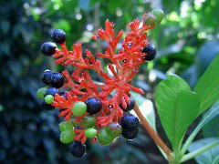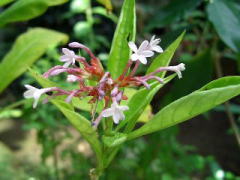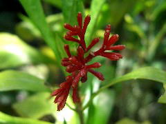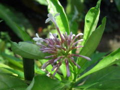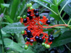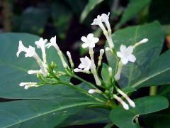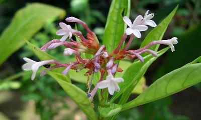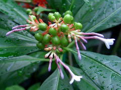 インド伝統医学のアーユル・ヴェーダに伝えられている薬用植物です。強い鎮静作用を持ち、毒ヘビや毒虫に咬まれたときの解熱用に民間薬として使われていました。また、根から抽出されるレセルピンは血圧降下剤として使われています。