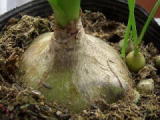 鱗茎が赤いタイプ(赤色海葱=レッドスキル)と白いタイプ(白色海葱=ホワイトスキル)があり、白色海葱は生薬の「海葱」として、利尿・去痰・催吐・強心等の薬用植物として利用されています。赤色海葱は毒成分が強く、古くから殺鼠剤の原料として育てられていました。鱗茎はかなり大きくなります。 |