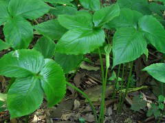 ![]() ![]() ![]() ![]() 塊茎は半夏(ハンゲ)と呼ばれ漢方処方に配剤されます。 -------- オオハンゲ(Pinellia tripartita (Blume) Schott) -------- ![]() ![]()