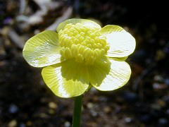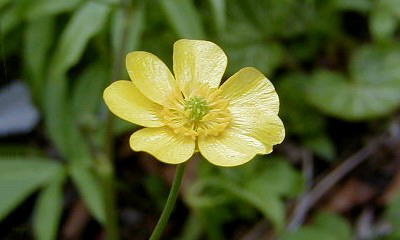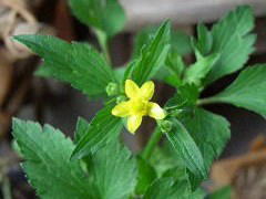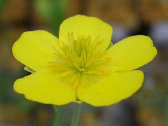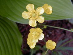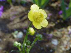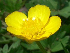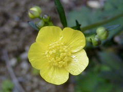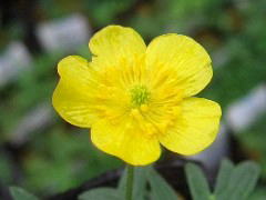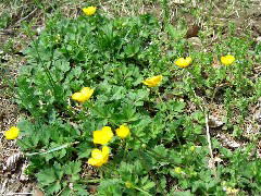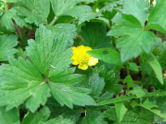 春の日当りのよい山野や丘陵に黄色の花をつける40cmから60cmの野草です。花には光沢があり晴れた日には風に吹かれてキラキラ輝いて見えます。けっこう可憐な野草です。これは一重ですが八重のものもあり、もともとはそちらを「キンポウゲ」と呼んでいたようです。今は両方の呼び名がポピュラーになっていてちょっと紛らわしいですね。葉が馬の足の形に似ているので「ウマノアシガタ」と呼ばれていますが、どこが似ているんでしょうか? |