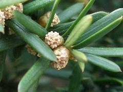 イチイ科 イチイ属、雌雄異株の匍匐性常緑低木 |