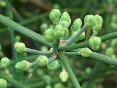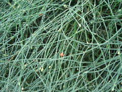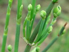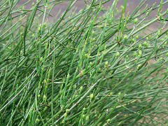 長井長義博士が発見したエフェドリンは喘息の薬として大きな影響を与えましたが、その興奮作用を利用して作られた「ヒロポン」は有名ですね。トクサに似た茎をしています。 |
