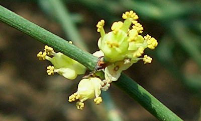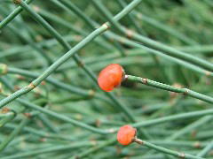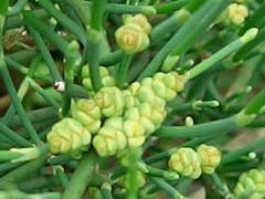 ![]() 雌花は楕円形の魅惑的な赤い実をつけます。 ![]() ![]() -------- フタマタマオウ -------- (Ephedra distachya Stapf) ![]() 雌花が茎の先に二又状に分かれて付いています。 ![]()