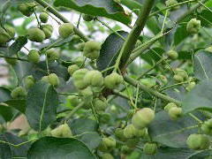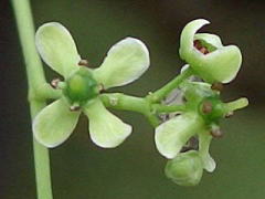 ![]() 花はいたって質素です。 ![]() ![]() 小さなつぼみが見えるでしょうか? ![]() まだ青い頃の果実です。これからだんだん赤くなっていきます。 ![]()