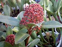 葉の様子が「シキミ」に似ているところからこの名が付いているもので、シキミとは全く関係のない種です。雌雄別株で雌株には赤く熟す丸い実が出来ます。この実に激しい痙攣作用があります。