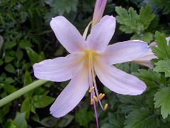 夏の草地に野生化していますが葉が茂るのは春となります。葉が出る前に花径だけが伸びて花が咲き、花が終わってから葉が出てきます。反り返った長い花弁と長いオシベ特徴的ですね。自然分球で増え、草丈は50cmから70cmほど。