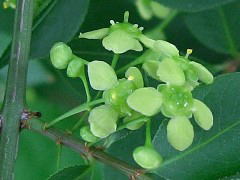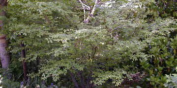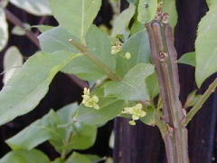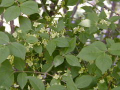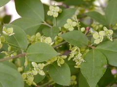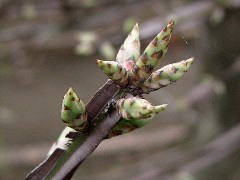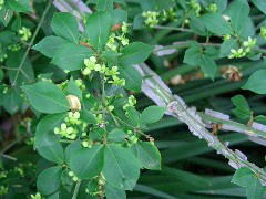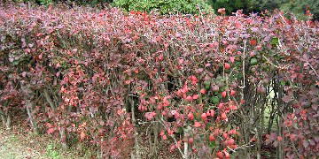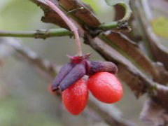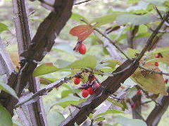 庭先に植えてあるのを結構見かけますね。秋にはみごとに紅葉して赤い実とともによく知られていますが、その実には毒性があるので口に入れてはいけません。シラミコロシの別名のとおり民間薬として利用されていたらしいですが、シラミが多くいた時代でしょうね。 |
