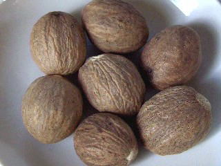 コショウ、クローブ、シナモンと並ぶ世界4大スパイスとして有名ですね。洋ナシ型の果実の中にある種子の種皮を除いたものを「ナツメグ」和名を「肉豆蒄(にくずく)」とも言い、外皮と種子との間にある網目状の子衣を「メース(Mace)」と呼びます。粉末になってスパイスコーナーで販売されていますが、その注意書きにも「肉1kgにナツメグ0.2g程が標準的使用量で、一度に5g以上使うと幻覚症状が出る場合もあるので注意してください。」との記載があったりします。残念ながらバッドトリップのようだ。 |
