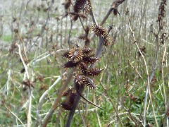 これは有名な雑草ですね。「ひっつき虫」とも呼ばれトゲトゲのある実を投げあってセーターなどに引っ付けて遊んだ経験のある方も多いと思います。マジックテープを作るきっかけにもなったそうです。実を乾燥させたものは生薬で「蒼耳子(そうじし)」と呼ばれ解熱、鎮痛などに使われています・・・立派な薬草ですね。でも小毒ってことで過量摂取にはご注意です。