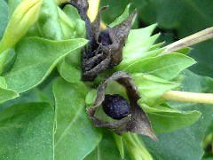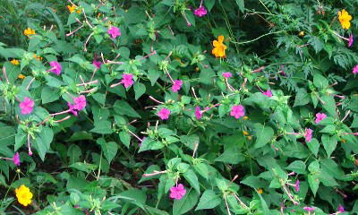 春に種をまくと、夏から初秋の夕方から翌朝陽の高くなる頃にかけて花を咲かせます。英名の「フォーオクロック」は、花の咲く頃の時間を表しています。庭先でよく見かける有名は花ですね。とんでもなく増えます。よくこの種をつぶしたりして遊んだものですが、なんともなかったですね。
