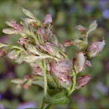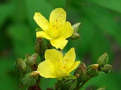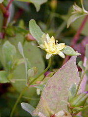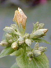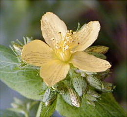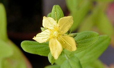 葉から出る赤い色素毒は紫外線にあたると毒性が現われるという変った性質を持っています。その昔、鷹の傷の治療に使っていた秘密の薬草を、人のいい弟が他人に洩らしてしまったため兄が怒り弟を切り殺し、恋人は後を追ったとの伝説を持つ止血・鎮痛効果の優れた薬草でもあります。草丈は50cmから1mほどになり、夏にレモンに似た香りのするオシベのかわいい花を咲かせます。 |