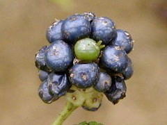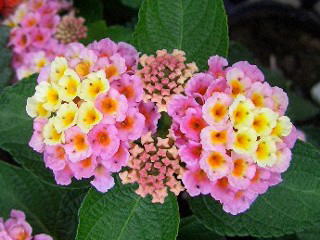 花は春から秋にかけて咲き、開花後にはその花色を変化させるものもあります。寒さや霜にも強く、草のようですが常緑の小低木です。黒い果実の中にある種子に毒成分を含むため、果肉を食べるときに種子を噛み砕かない鳥たちには食料として遠くに運んでもらえ、種子まで噛み砕いて食べる動物たちからは身を守るというシステムになっています。花の時期になると園芸店にたくさんの種類が並びますね。 |