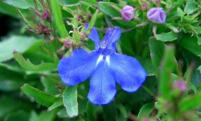 キキョウ科 ロベリア属、北米原産の半耐寒性一年草、不完全花 |