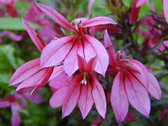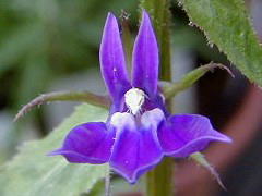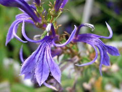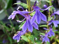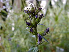山野の水辺に自生する草丈50cmから1mほどの宿根草で夏から初秋にかけて独特な濃紫の花を咲かせます。水辺の植物のくせに冬の多湿は苦手でやや乾燥ぎみに育てます。株分け・挿し木・種蒔きで増やせ、山野草としても人気があります。山間などでこの紫花の群生に目を奪われますが、開発や乱採などで自生地が減少しているようです。 |