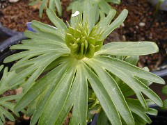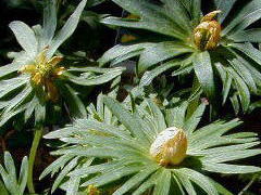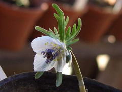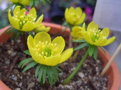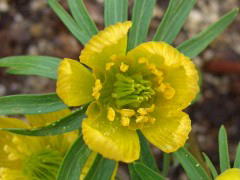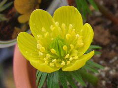 名前のとおり節分の頃、白い花を咲かせます。乱獲により絶滅の危機にあり、保護しているところも多いですね。種から育てられますが花が咲くまで3年以上かかります。英名は「ウインター・アコニット」ですが、アコニットとはトリカブトのこと。同じキンポウゲ科の仲間です。属名の「エランティス」はギリシャ語で「春の花」の意。ちょっと季節がズレていますね。日本の「節分」はやはりお国柄なのでしょうか? |
