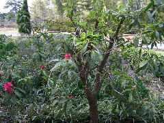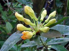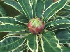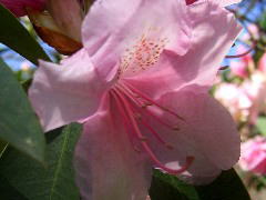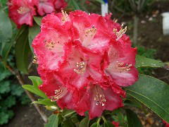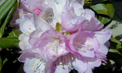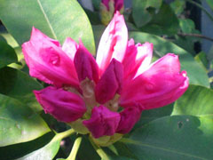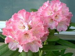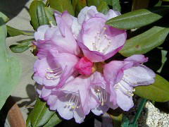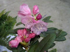 初夏に淡い紅色の花を咲かせます。挿し木(当年枝挿し)で増やしますが、夏は暑さに弱く日よけをし、冬は霜をよけて軒下で育てます。欧米の園芸界では改良も盛んで愛好家も多いようです。ツツジ科ツツジ属シャクナゲ亜種のものを一般的に「シャクナゲ」と呼びます。 |