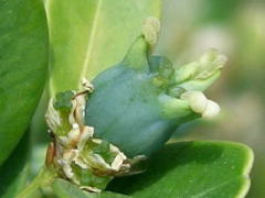 春先に白っぽい目立たない花を咲かせます。実は三本の角のようなものが付いた変わった形をしています。