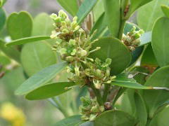 櫛や印鑑、細工物に利用されている有名な樹木ですね。とても丈夫なうえ加工もしやすいというお徳な性質を持っています。葉も蜜で刈り込みも耐えることから庭木や生け垣として多く植えられています。葉は対生し平らに広がります。