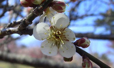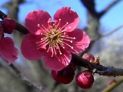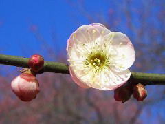 有名な落葉高木ですね。葉や未熟果の中の種子は結構強い毒性があります。しかし、ご存知のように青梅も梅酒にしたり煮たりするとまったく毒性が無くなります。梅干の種も中身は食べないようにしたほうがいいですね。学名「Prunus mume」の「mume」はウメの古名に由来します。そういえば、おばあちゃんの名前に「ムメ」と書いて「ウメ」さんって呼ぶ方がいらっしゃいますね。関係ないかな? |