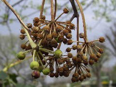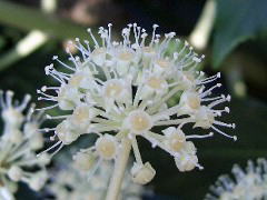 ウコギ科 ヤツデ属、固い絆で結ばれた雌雄異株の常緑低木