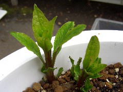 | 国産の「ヤマゴボウ(ヤマゴボウ科ヤマゴボウ属)」ですが有毒とされています。食卓にのぼるゴボウはキク科ゴボウ属でキクの仲間。もともとは両者ともに薬用として渡来したのですがキク科のゴボウだけ食卓の野菜として広まっていったようです。 |
