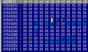 ![]() さて、「ビューポイント」やります。今回はExSTANDの解析の仕方を少し勉強しましょうか。。多分、これであなたも一流の改造マンになること間違いなし、です(多分) まず、いつもの残機減らないです。これは数値サーチですから簡単ですよね。 Defaultの領域にHeap2とHeap3それにSub Heapを追加しておけばまずはずれません(多すぎるちゅうに) これで{s3}とか{s2}でサーチです。 今回は左表にある 3560DD0 に入っていたのでここを 09にして変わらなくしちゃいます。 3560DD0%09 これでこのアドレスには09が入って永久に減りません。 さて、ムテキです。随分点滅ムテキの増減データのサーチをしましたが見つかりません。そうなれば、今度はムテキフラッグのサーチしかありません。しかし、このフラグのサーチはアドレスががかなり残ってしまい、いつまでも減りません。そういう場合にどうするか、が今回のお題目です。 (1)まず、残機減らないのアドレスがあった付近を表示させてください(上表)。。これがコツです(^^;; (2)ムテキの時とムテキでない時を数値が変わった、変わらないでサーチを数回繰り返してください。 (3)該当するデータは上表にあるように黄色のデータで表示されます。このデータの変わり方をじっと見ていてください。 (4)数カ所ありますが、この場合はそのすべてをコードかして試してみるしかありません。(勘の言い方は一発で) (5)今回の場合、 3560D75 の数値が 08 になった時にムテキですのでコードで試してみました。 3560D75%08 (6)成功でした。これでムテキの完成です。 わかりにくいですか???そうかもしれません。でも、じっくり読んで、実践してもらえば、成る程と思ってもらえるんじゃあないでしょうか。 サーチの仕方はExSTANDのホームページにありますし、 RKDさんのホームページにもありますから一度いってみてくらはい(「ビューポイント」のボンブの改造はRKDさんの解析参照にしてくらはいね。RKDさんお元気ですか)。 それにしても、この「ビューポイント」いいですね。あのはちゃめちゃとも思えるアップテンポの音楽なんて最高です。誰が考えたのでしょうか、、シューティングゲームのBGMにはとても似つかわしくないみたいですが、これが結構はまっている。兎に角一度聞いてみてくらはい。 しかし、どうしてここまでムズイのか。でも、でも、ムテキですから関係おまへんか。 |