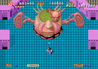 No.493 [エイリアンシンドローム]![]() アーケードゲームのエイリアンシンドローム」の攻略(とは言えないか)です。3度目の登場ですよね、確か。今回はすべてのボスをお見せします。あのゲロゲログログロの。。。。 その前に改造です。残機減らないと無敵のサーチは以前書きましたから今回はタイム減らないを追加しました。これで安心してゲームが出来ます。 結果です。 ![]() このゲームは確か、SEGAマスターシステムにも移植されたのでしたよね。ちょっと紹介しときましょうか。まず、タイトルです。 ![]() ちょっとショボイですかね。仕方ないですけどね。 ついでに1面のボス。ううん、背景が真っ暗。シンプル イズ ベスト なんてわけないか。。 ![]() この際これもついでにサーチしときました。無敵は点滅無敵です。1バイトの増減サーチでカンタンに出てきますから、昔懐かしの方、やってみてください。 ![]() と、いうことで本編の「エリシン」です。マスターシステムのボスがどう変わるか・・・・まず、1面のボスです。随分変わっちゃったでしょ。ねっ。 ![]() ただ、前にも書きましたが、無敵でありながらやられちゃうことがしばしば、、、特にボスを相手にするとそれはヒドイみたいです。でも、残機がへりませんから何とかなりますけどね。 さて、2面です。ほんま、グチャグチャや。。。 ![]() 3面もひどいね。。でもきもちいい。。いえ、キモイ(^^;; ![]() 4面はこれ。何でしょうか・・・でも、何でもいいですか。 ![]() 5面は・・・ちょっとステージのショットをひとつ。 ![]() そして、ボスです。いわゆるモグラたたきです。穴から顔を出した変な顔したボスにゴツン、いえ、ファイアーを発射してやりましょう。 ![]() 6面は。。もう何も言えません。 ![]() ちょっと前後しちゃいましたが、このゲームは6面+1です。6面が終わったら、最後のステージです。 ![]() これが最後のステージのボス。何でしょうね。でも、いい(アホ) ![]() そしてエンディングです。沢山の仲間に迎えられて・・・ ![]() これですか。いいなぁ・・・・ ![]() というわけで「エイリアンシンドローム」の華麗かつ、気持ちのいいショットのカズカズでした。 これで今晩もグッスリ眠れるでしょうか。。 最近どっかおかしいおじさんでした。 |