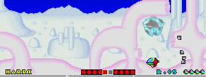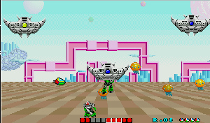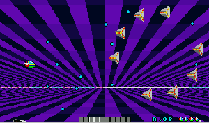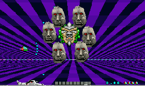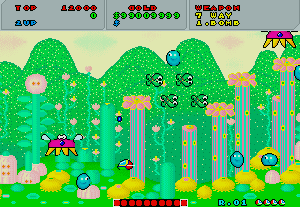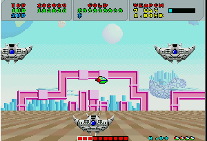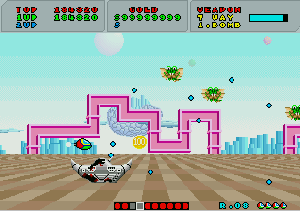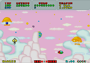 No.503 [ファンタジーゾーン・スペハリモード]![]() 今日は改造ではなく、おもしろいものご覧にいれちゃいます。右のショットをみて「あぁ!」と懐かしがっているあなたは、そうとうのマニア(何のや) そうなんです・・・これが、あの噂の(?)X68000版「ファンタジーゾーン」のスペハリモードなのです。 前、解析したとき、このスペハリモードへの入り方がわからなくて(忘れてしまっていて)できなかったのですが、川村さんからのメールで入り方がわかったので、早速やってみました・・・・という訳なのです。 入り方は・・・・まず、1面ですが、下のショットのように、どの基地(?)も破壊せずに(ここが肝心)一番右端にある基地までやってきてください。画面下にどれが何番目の基地かマークされますから、間違えないですよね。そして、これを破壊すると。。。。 ![]() Hマークを刻印したコインが出現し、これを取れば、、下のショットのように左下にHの文字が表示されます。そして、 ![]() 2面では右から2番目の基地を破壊すればAマークを刻印したコインが出現して、これをとれば・・・ ほら、このように、HのとなりにAの文字が表示されます。もう一度言いますが、2番目の基地を一番始めに破壊してください。他の基地をそれより先に破壊しては駄目ですよ(念のため)![]() ![]() そして3面は省略して・・・4面は右から4番目の基地を最初に破壊してRの文字を追加して・・・ 5面は5番目を破壊してIの文字をGET!となれば・・・ ![]() 6面でEの文字をGET!!!後、残るは・・・ ですよね。7面でRの文字を取れば「HARRIER」の出来上がり。すると・・・![]() 念願の「スペハリモード」に入ります。 この画面が噂の「スペハリモード」です。じっくりと見てください。![]() みたことのあるキャラが・・・ そして、あの高速面が横スクロールの高速面に・・・![]() ・・・・・・・・・ ![]() ということで、今回はほとんど誰も見たことのない「ファンタジーゾーン」でしたが、見ているだけではちっともオモロナイ。当時はX68000を持っている人の特権だったのですが、今やこうして誰でも遊べますもんね。さあ、早速EX68かwinx68kをゲットして遊びましょう・・楽しいですよ。 |