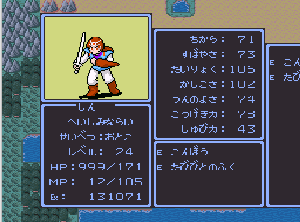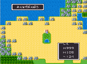 No.509 [TDQ2(その1)]![]() どうしよかな、と思ったのですが、始めてしまいました。「TDQ」は何とか終わりましたが、この「TDQ2」は自信がありません。ただ、何年か前クリアしたことは確かですから、それをたよりに何とか頑張ってみようかな・・・・と、はなはだ頼りないのですが、リアルタイムアップということで、スタートします。 左のLOADING画面が終わって、これがスタート画面です。ワクワクしちゃいますよね。 ![]() スタートはマダルカル島のモコロ村。ここには西に行く通路がありますが、今は行けないみたいです。主人公(シン)は3年の奉公(?)のためマダルカル城にいくのですが、そこに魔物が来襲して、シンはバシルーラの魔法でどこかに飛ばされてしまいます。 ![]() そして飛んできたのがここ。。。そんな感じで物語は始まります。 ![]() ここはリストの村。気がついたシンはしばらくこのあたりをウロつきます。 その前に改造です。改造はお金と経験値、HPです。 どれも2バイトの16進数でデータ化されていますので、カンタンに出てきます。結果です。これでシンは一度戦えばみるみるレベルがあがっていきます。 ![]() ![]() さて、少し村の付近を歩いてみます。北には砂漠が広がっており、オアシスの北には街があります。 ![]() 西に歩いていくと何やら関所らしきものが。入ってみます。 ![]() 王の許可なしでは通してくれないなんて、何か「TDQ」にもあったような風景ですよね。 ![]() じゃあ城に入ってみましょ。レーアオメト城だと言っています。 ![]() ということで今回はおしまい。ちょっと短過ぎましたか。こんなことでは先が思いやられます・・・でも、気長につきあってください。みなさんも一緒にやってみませんか。 ところで、「TDQ」の本家サイトはここです。ご存じですよね。ここでいろいろな情報がもらえますから、一度行って遊んできてください。「TDQ」が一層おもしろくなりますよ。と、いうことで、ばいちゃ(何や・・・・) |