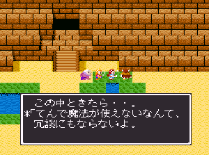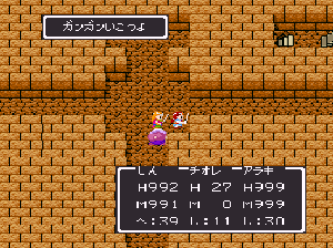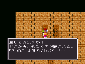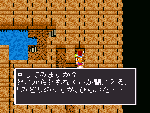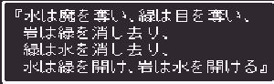 No.512 [TDQ2(その4)]![]() スイッチをまわすと・・・・これは多分、緑のピラミッドの入り口が開いた・・・のでは。 とりあえず、このピラミッドはこれ以上、今のところ進めないみたいですから、出ましょうか。 歩いていくと、もうひとつのピラミッドがすぐ近くに緑の木が、だからここは緑のピラミッド。多分 ![]() ここが入り口・・・ ![]() このピラミッドにもスイッチがあり、回すと・・・ ![]() そして、またひとつピラミッドが。岩があるから、岩のピラミッドでしょうね(単純)・・・しかし、ここにでは何も見つかりません。 ![]() ううううんん・・・ 訳がわからないから、もう一度一番はじめのピラミッドへ言ってみます。 と、、、、魔法が使えない・・・・・確か「水は魔を奪う」ってどこかで言っていましたよね。ということは、これは水のピラミッドですか。水があるしね。うん。 ![]() もう一度思い出しましょ。・・・・・・でしたよね。ということは・・・この水のピラミッドを開けるのは緑のピラミッド。そして緑のピラミッドは目を奪う・・・ってことは、何か見えないものを見落としている・・・・ ![]() 兎に角探検。ここは岩のピラミッドでスイッチを回したので通れるようになったのかな。。。 ![]() そんでもってスイッチにたどり着いて・・・ ![]() 更に、岩のピラミッドで何か水のピラミッドに変化を起こすスイッチはないかと、ウロウロ。そしてピラミッドの頂上にでました。しかし、そこにあったのは、、キメラの翼・・か。 ![]() ふぅ・・・苦労しました。岩のピラミッドでスイッチを捜すにはここをこんな風に通らなくっては駄目なんですよ。でないと、落ちちゃいますよ!(ネタバレですけど・・・) ![]() そして、スイッチが見つかります。これで水のピラミッドに何かが起こっている。。ハズ。 もひとつ、ここにもスイッチが。。。。。 ![]() 水のピラミッドでは・・・こんなことが起こっていました。わかりますよね。 ![]() こんなとこに出てきて・・・ ![]() モーニュの骨ですか・・・ ![]() アラキどのがこんなことを言っています。 ![]() そして城に帰って王様に会えば・・・ ![]() アラキが文字を解読している間に王様にこんな頼まれごとされちゃいました。 ニメケの種火・・・ですか。その場所は西のラーレの洞窟ですって・・・ ![]() ということで今回はおしまいにします。ピラミッドの謎で随分苦労しちゃいました。 でも、ピラミッドで何か取り忘れているような。。。また、後できましょか。 |
