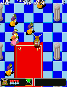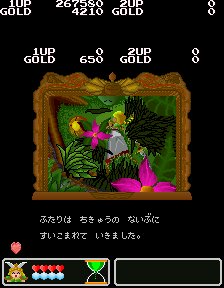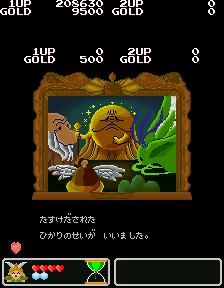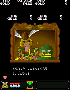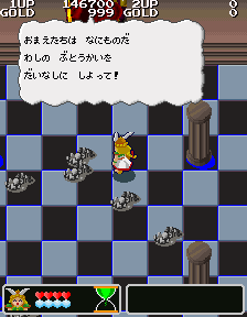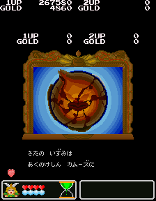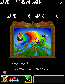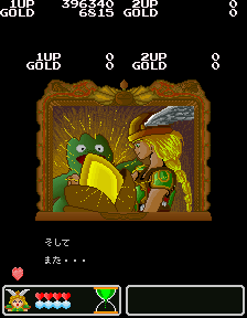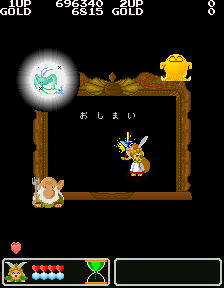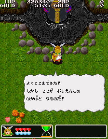 No.530[ワルキューレの伝説(その2)]![]() この黄金の城跡を攻略するには、こんなヒントが・・スプーンとは・・・ こんなんですよね。この上でジャンプすれば、、思わぬところに着地して、、、こんなところに来て、またヒントが。。。 滑り台ですって。 ![]() ![]() これが(右)滑り台です。気持ちいい・・・・・・ そんなことして遊んでいると、ここはお城の中。みんな楽しそうにおどっていました。 ![]() ![]() と、出てきたのは、、どうやら、ボス・・ へんな顔したボス。。。。エレキマンっていうのです。(ロックマンじゃあないですよ) ![]() でも、カンタンにやっつけちゃって・・・とっ・・・ さいはての村にむかったのでした(書いてある・・・) ![]() ラウンド5はさいはての村(何度も言うなって)。 ![]() ここで光の精を助けてあげて・・・ ![]() 光の精が言ったことですか? 黄金の種は不思議な力を持っていて、北の泉に入れるとどんな願いも叶う。。ということでした。とにかく、北の泉を目指すのが、このゲームの目的なんです。 で、今度は水の精を助けるために・・・ ![]() そして、氷の世界でした。 そして、そして、こいつがボス。水の精を救出したのでした。水の精は言いました。 ![]() カームズのたくらみを阻むためには・・・ ![]() その前に試練です。 ![]() 無敵だからAを選んじゃいましたが、かしこいあなたは・・・ ![]() 虹がかかっちゃいました。キレイ・・・・・・・・・・・・ ![]() いよいよ・・・最後・・ ![]() 北の泉はカムーズに支配されてしまっていたのでした。 ![]() どぎつい色した悪魔の手下たち・・・ ![]() こんなところもあって。。 ![]() そして、ついに北の泉に。 ![]() こいつが、悪の大親分、カムーズ。 ![]() 相当強いのですが、、、こっちはムテキ ![]() で、エンディングです。 ![]() 変なの。。。 ![]() ワルキューレとサンドラ・・・ ![]() でした。それにしてもカワユイ(^^;; ![]() やっぱり、おもしろい。そして、カワユクテ、キレイ。でも、難しそうですね。ムテキでやったから、苦労はしませんでしたが、これをまともにやったら、どの位コインを使ってしまうか。。悔しい思いをしたあなた。。。リベンジしてください。 |