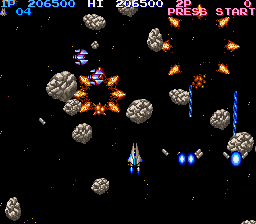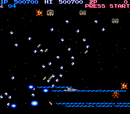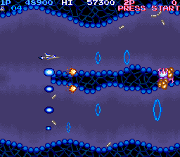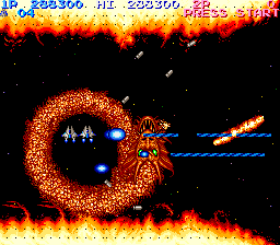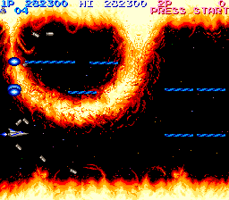 No.534[沙羅曼蛇(完全版)]![]() これもやらなくては・・・ですよね。「グラディウス」と「グラディウスU」の間に発表されたのが、これ。凄かったですよね。今、やってみれば、どうってことないかもしれませんが(そんなことないですけどね)当時は衝撃の作品だったような気がします。ゲームセンターは、このゲームがやりたくって人群が出来るくらいでした。おじさんも、そのひとりでした。もっとも、ただ見ているだけでしたけどね。 でも、一連の「グラ」シリーズの中で一番クリアしやすかったのは、この「沙羅曼蛇」だったですよね。その理由の第一はパワーアップシステムの違いだったでしょう。すぐにオプションがつけることが出来るのが、ゲームをやさしくしました。そしてもうひとつは、自機がやられても、強制的に戻されることなく、やられたその場所に次機が現れて再開出来るということではなかったでしょうか。 と、まあ、いろいろあるのですが、そんなご託を並べなくても、みなさんはとっくにご承知のことばかり・・・わかりました。今回も、懐かしのスクリーンショットを堪能ください。その前に改造でした。 ![]()