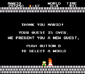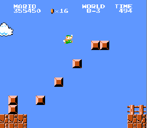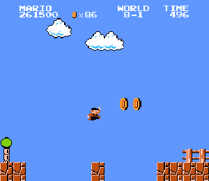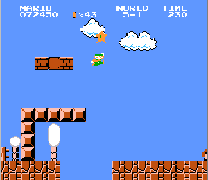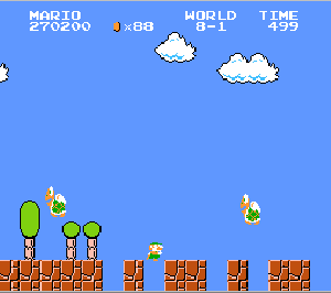 No.537[スーパーマリオブラザーズ(完全版)]![]() いろいろありますが、やっぱり、これ。これがなくては、何も始まらなかったのです。だから、今回、あの懐かしの名場面のカズカズを65枚並べちゃいます。あんまり懐かしいからといって、子供の前で泣いたりしないでください。お願いですから、、、でないと、おじさんまで、、泣けてきちゃいます。でも、まだ、クリアしてらっしゃらないかた、無敵コードを入れてどうぞ。 ![]() ただし、面クリアしたあとは、タイムのコードはOFFにしてやってください。でないと、次の面にいつまでたっても進めませんよ(^^;; では、、、、、、
