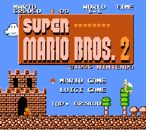 | No.539 [スーパーマリオブラザーズ2(その2)] 前回の最後に紹介した5−1の強風ジャンプ面は、結局断念、、、しかし、このまま終わるの悔しいから改造しました。 サーチしたのはステージセレクト。結果です。