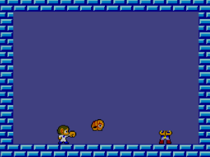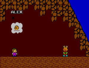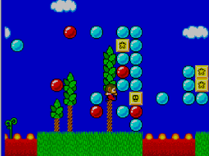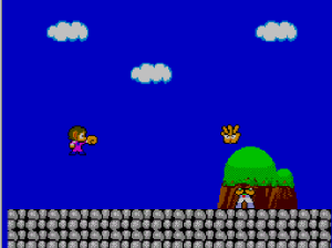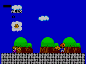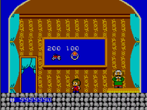 No.541 [アレックスキッド・ミラクルワールド]![]() 「スーパーマリオ」をやったなら「アレックスキッド」も・・と考えました。ですよね。SEGA派のおじさんにとって、このアレックスはやっぱ、忘れられないゲ^−ムでした。でも、これが難しい。どうしてこんなに難しくしちゃったの。。。SEGAさん。バランスというもの考えて欲しかったですねぇ。 ということで、今回、改造してやってみましたが・・・・ まず、改造です。残機減らないと無敵です。。サーチはカンタンですから結果だけ。 ![]() 最初はこんなとこから始まります。懐かしい。。。 ![]() そして、こんな画面。。。何度みたことか。。絵はとってもキレイ。これだけはファミコンをしのいでいました。 ![]() 水中面もこのとおり。 ![]() アイテムはお店で購入。改造でお金が多すぎて、重くって・・・(^^;; ![]() バイクを買ってぶっ飛ばしたのでしたよね。 ![]() ステージのオワリにはジャンケンマン(?)がいて3回勝負。2回勝てばクリア。負ければ石にされてしまうのでした(変なの) ![]() 水中面のヒョウキン者がこの大タコ。無敵だからカンタン。 ![]() 赤いブロックは壊せないから・・・ ![]() タケコプターじゃあないのですが、空も飛べます。でも、すぐにブロックにぶつかって壊れてしまいます。 ![]() このステージはイノシシとの対決。何か気がのらなくって。。 ![]() 次は洞窟ステージです。ここらあたりまでは来た憶えが。。。 ![]() やっぱり出てきたジャンケンマン。 ![]() 森の奥ふかくにに来てしまいました。ここも記憶にありますから、、来たのでしょう。昔は頑張ったのですね。エライ(何じゃ) ![]() これがボス。熊の大将でっか(?) ![]() ボートですか。。。記憶にないなぁ ![]() こんなとこもあって。。 ![]() ジャンケンです。 ![]() ここはジャンケンで勝っても、もう一勝負。でも、ムテキでっから。 ![]() ここも同じ。チョキした手が攻撃してくるのです。 ![]() このステージにムテキは通用しません。たまには自力でガンバルのもいいですよね(^^;; ![]() で、パーの手が攻撃してきて、、、あっさりやっつけてですね。 ![]() 最後のキャッスルステージ。。だと思うのですが。。。 ![]() ここなんです。。。。クリアできません。アレックスが左のお魚のブロックを叩けば。。。 ![]() 右側のブロックが開きます。と、言うことは、ここから入って、階段を登っていきなさい。。。 ![]() ということらしいのですが、、、、これが出来ない。ホンマに出来るの????・・・・・・・・・・・・・・・・・・・・・・・・・・・ということで、、これ以上進めなくなっちゃいました。ジグジョ〜〜〜〜〜で、オシマイです。SEGAさん、、たのんまっせ。だから「マリオ」に負けちゃったとはいいませんが、何とかエンディングが見たかったですよね。でも、見たかたもいらっしゃるのでしょうね。どうすれば、いいの??おせぇて(^^;; |