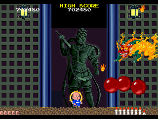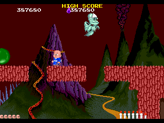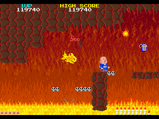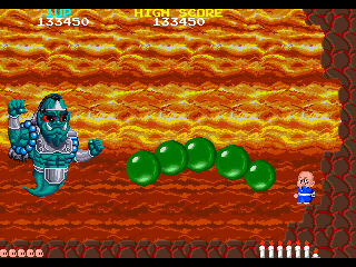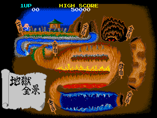 No.548 [地獄巡り(アーケード)]![]() これまた新規に追加された「地獄巡り」です。このゲームもRAINEで早くから対応されていたゲームです。しかしながら、エンディングは見ることができませんでした。RAINEにも改造コードを使えるような機能があるのですが、さすが無敵コードはありません。 そこで、今回は無敵コードを捜して、あっさり仇をうっちゃいましょう(?) コードです。カンタンにみつかりますよ。結果です。 ![]() 日本版がなくって海外版でやっています。タイトルは「BONZE ADVENTURE」BONZEって坊さんのことですかね。 ゲームはこんなとこから始まります。英語ですから意味がわからん・・・すんまへん。 ![]() そしてこれがMAPですか。最後は地獄の7丁目ってことですかね。 ![]() まず、1丁目ですか。 ![]() 絵はアーケード版だけあってキレイです。以前、このアーケード版が待ちきれずにPCエンジン版やりましたが(No324)、やっぱりアーケード版にはかないません。最近MAMEのスピードが早くなって、ほとんどストレスを感じなくなりましたから、一度やってみてください。 さて、あとはいつものようにスクリーンショットを並べていきましょうか。
