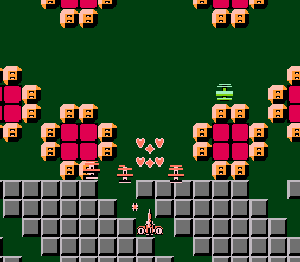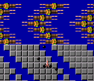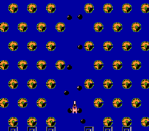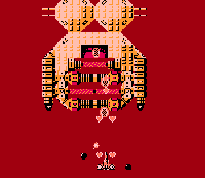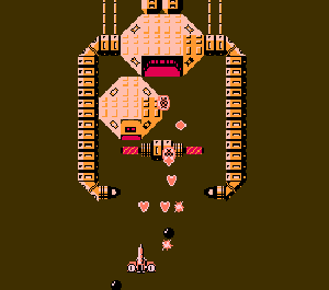 No.555 [B−WINGS(後半)]![]() 暇ですからエンディングをみてやろう。。。と始めたのが悪かったみたいです。 一体、このゲームはどこまで続くのでしょうか??? 今、ステージ24です。でも、まだまだ終わりそうもないのです。もしかしたらループしていて終わりがないのかもしれません。ですから、後半とはいいながら、エンディングは見ることが出来ませんでした(あるのか???うん??) でも、このゲームは武器の選択が重要なことがわかりました。と、いうより、右の武器のうち、JUMPがなければ永久にクリアできないみたいです。 たとえば、これ。 ![]() 上の緑色の部分を攻撃しないと敵は倒れてくれません。でも、そこは黄色いブロックに阻まれて攻撃することが出来ません。こんな時にJUMPを使えば。。。あとは、やってみてください。 この時、改造では武器の選択アドレスに08を入れればいいのですが、改造なしでは、なかなかクリアできないのじゃあないでしょうか。とにかく、カワユイ顔して超ムズゲームかもしれません。あとは、スクリーンショットをみて20年前を思い出してください。 それにしても、、疲れた。。