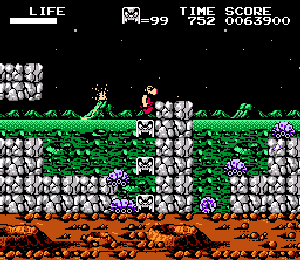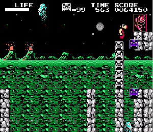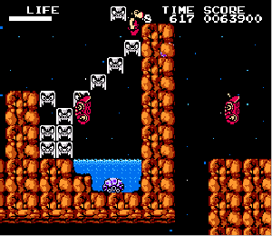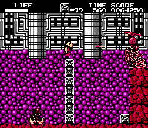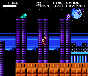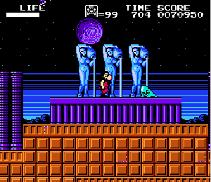 No.567 [火の鳥 鳳凰編 我王の冒険(その2)]![]() 大和ステージから来世ステージへワープするポイントは右図のここです。同じようなところがあって迷いますが、Y2さんのHPにあるマップを見ればわかりますよね。ここで十字キーの上を押せばワープできるのですが、無敵状態ではワープ出来ませんから、この時は無敵コードをOFFにしてください。 そして、来世ステージです。 出てくるところは、ここ。 ![]() どんどん右へ進みましょう。 ![]() ここは来世ステージ2。。かな。 ![]() こんなところに火の鳥の破片がありました。 ![]() ステージ3のボスです。どうってことない(無敵ですから・・うん) ![]() ステージ4の途中。なかなかのものですよね。三人のお姉さんが迎えてくれます。 ![]() 無敵だと、こんなことが出来ちゃいます。岩も要らないのです。 ![]() このブロックの先に破片があって、ブロックを崩していくのですが・・・ ![]() やっぱり、こんなことが出来るんです。 ![]() 最後5ステージのボスです。かぁ〜〜るくあしらっちゃいましょ。 ![]() でもって、来世ステージでの火の鳥の破片はすべて集まりました。 ![]() 次は太古ステージですが、ワープゾーンは・・・・っと・・・・ |
