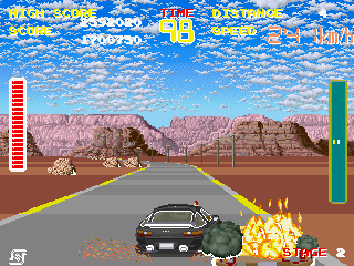 No.569 [CHASE HQ]![]() 今回MAMEに対応した「CHASE HQ」ですが、まともに遊べません。だから、初めてRAINEでの改造をやってみました。RAINEも随分前からwin版があったのですが、これがフルスクリーンでしか遊べませ。それと、RAINEに対応しているゲームの大半はMAMEにも対応している、ということで、やるチャンスがなかったのですが、今回は「CHASE HQ」がやりたかった、ということで無理矢理にやってみました。それにしても、RAINは軽い。。。どうしてWINDOWサイズで遊べるようにしてくれないのでしょうか? こだわりなんでしょうか・・確かに、フルサイズは迫力があっていいのですが・・・ ![]() 改造は左の画面にあるTIMEを減らなくしちゃいます。時間以内に犯人を逮捕するのが、このゲームのコンセプトですから・・ゲームにならない?でもでも、いいじゃあないですか(^^;; サーチは10進法でやってください。すぐに出てきます。ここを99にして減らなくします。 コースはまず、これ・・・ ![]() そして追いかける車は・・・ ![]() さて、出発です。スムーズな動きはRAINEだからでしょうか。バックミュージックもいい。うん。 ![]() ぐんぐん飛ばして追いかけます。アウトランもよかったのですが、これも負けてはいません。そして、逃走車を発見しました。 ![]() これってあのX68000にも移植されたのですが、面白く遊んだ記憶がありません。X68000といえど、マシンの限界だったのでしょうか。 ![]() 敢え無く逮捕です。COMPLETE!と言われるとちょっとハズカシイのですが・・・ ![]() ここはトンネル・・ ![]() うん、なかなかいいですね。 ![]() 今回もあっさりと追いついて。。。敵の車は炎上・・・ ![]() またしても、、COMPLETE!!! ![]() と、こんなゲームです。面白そうでしょ。それにやっぱRAINEは軽くていいですよね。少し探して、他にも何かやってみましょうか。でも、、、ないですね。 |