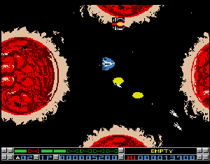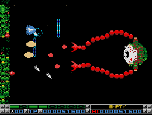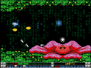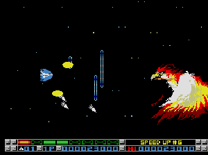 No.576 [ネメシス3 MSX]![]() MSXはジョイスティックがままならないのであきらめていたのですが、 Joy TOKEYで動くことわすれていました(^^;;で、やってみようかと思いました。本当は「ガリウス」やりたかったのですが、セーブ機能がないので、これ。「ネメシス3」です。これってやってみると、あの「グラディウスU」みたいですが、、「グラディウス」との関係は。。よくしりません。「ネメシス」というんですから、海外版でしょうか? でも、兎に角難しい・・・MSXのグラは難しいとの定評ですが、ホント地獄。いつも言うのですが、こんなんクリアする人いるのでしょうか・・・恐ろしや・・・・・・・・・・ 結局、途中で諦めてしまいました。だから、スクリーンショットも途中まで。何とも 残念なのですが、、仕方ありません。でも、ホンマ地獄です(^^; まず、この1面の太陽面(?)。これがもうあのアーケード版の比ではないくらいムズイ。 ![]() どこが難しいって、やったことあるかたはご存知でしょうが、すぐに炎につかまって真っ黒け・・・・そりゃあ、大変なのです。改造でもしなければ1面もクリアできません。 その改造です。改造はいつものグラと同じです。パワーアップゲージは番号を持っていて、それがどこかに格納されています。ここを08にすればバリア、07だとオプション、06だとレーザーってな具合ですよね。 ![]() だから、ポーズをかけながらフル装備にしてやってください。そしてバリアがなくならないように無敵にしちゃいます。 こいつが1面のボスですよね。 ![]() そして2面の植物惑星。。なかなか味があるでしょう。でも、そりゃあ、ムズイ(もう、いいって!) ![]() ここらへんまでは、何とかなるのですが。。。 ![]() まあ、なとか2面もボスとご対面。こいつは弱い(無敵ですから) ![]() これが3面。ホント凶悪。この青いレーザーに触れるとどうなるか。。。オソロシヤ。 ![]() やっとレーザー地獄を脱出したかと思えば、このワープブラックホール。これに吸い込まれると、この面の最初に返されてしまいます。こんなに沢山ブラックホールが口を開けているというのに、どうせって言うんや!!!! ![]() ということで、、、、くじけちゃいました。この先とっても見たいのですが、、おじさんの実力では。。。。。。みなさん、がんばってくらはい これからしばらくMSXです。。。(でも、セーブ機能ないからな。。) |