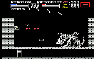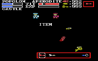 No.580 [ガリウスの迷宮 MSX(その2)]![]() 謎は解けました。答えはこれ。 ![]() ポニードラゴンに効果があるのは、白い矢(セラミックアロー)ではなく、ただのアローだったのです。ホント、ええ加減にせえよ。アローよりグレードが上のセラミックアローではたおせないのかい???というのは、まあ、いいですか。そういうキマリなんですから。。何じゃ、、兎に角、ギモンが解けましたからいいとしときましょ。血圧があがりますからね(^^;; アローのあるのはスタート地点から右へ右へといったところにある、ここ。。 ![]() そして、これを装備してポニードラゴンと戦うと。。。 ![]() あっという間に撃沈・・・・何や、他愛もないふっ・・ ![]() ということで、ワールド1のクリアです。皆さんをウロウロさせちゃって、すんまへん。でも、これと同じようなことがあったような。。。。あれは「TDQ2」の浮遊の杖のことですが、、、何を言っているのかわからない方は深く考えないでください。 で、今回は特別編ということでめでたしめでたしでした。 これから、しばらく「ガリウス」続けられそうです。よかったよかった・・・ |